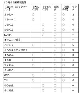②3回以下参加の方は、勝率5割以上がランク1、5割未満および初参加がランク0となります。