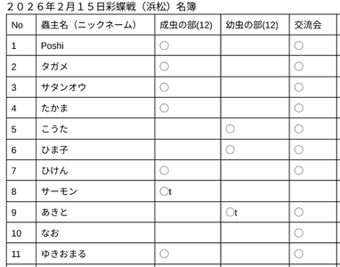 【開催告知】2026年2月15日(日)蟲神器公認大会”彩蝶戦”@静岡県浜松市