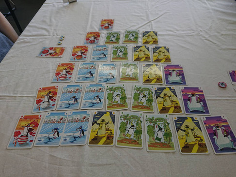 上の段には下の段と同じペンギンしか乗せられないので、並べ方によっては置けないペンギンも出てきます。置けなかったペンギンはシャチに襲われてしまいます。