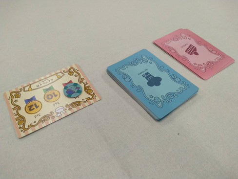 順番に1枚ずつカードを出し、1番大きな数字のカードを出した人が出された1番小さな数字の分だけ進んでいく数字比べレースゲームです。
