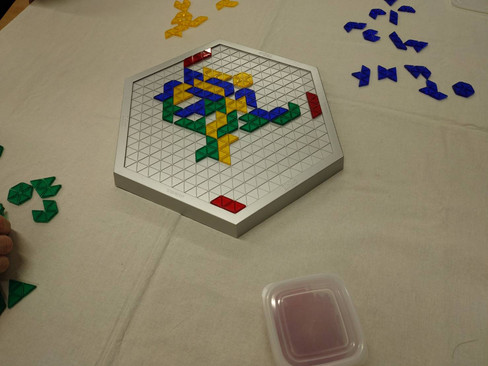 正三角形が繋がったピースを他の人よりたくさんボード上に配置する陣取りゲームです。